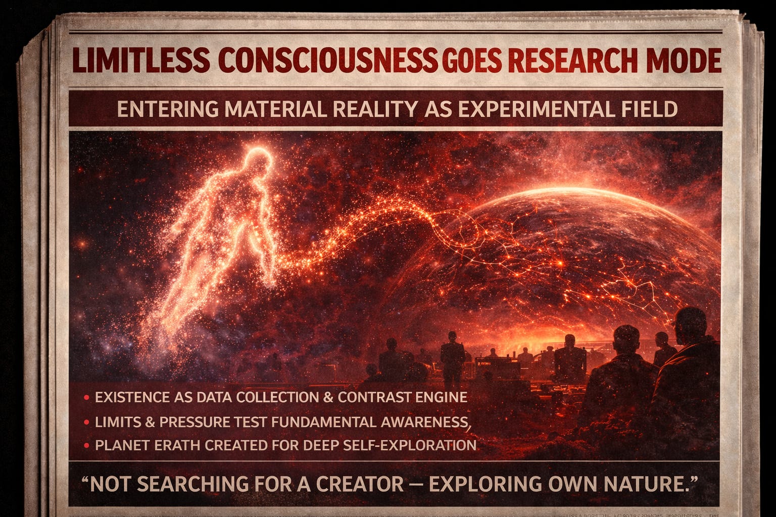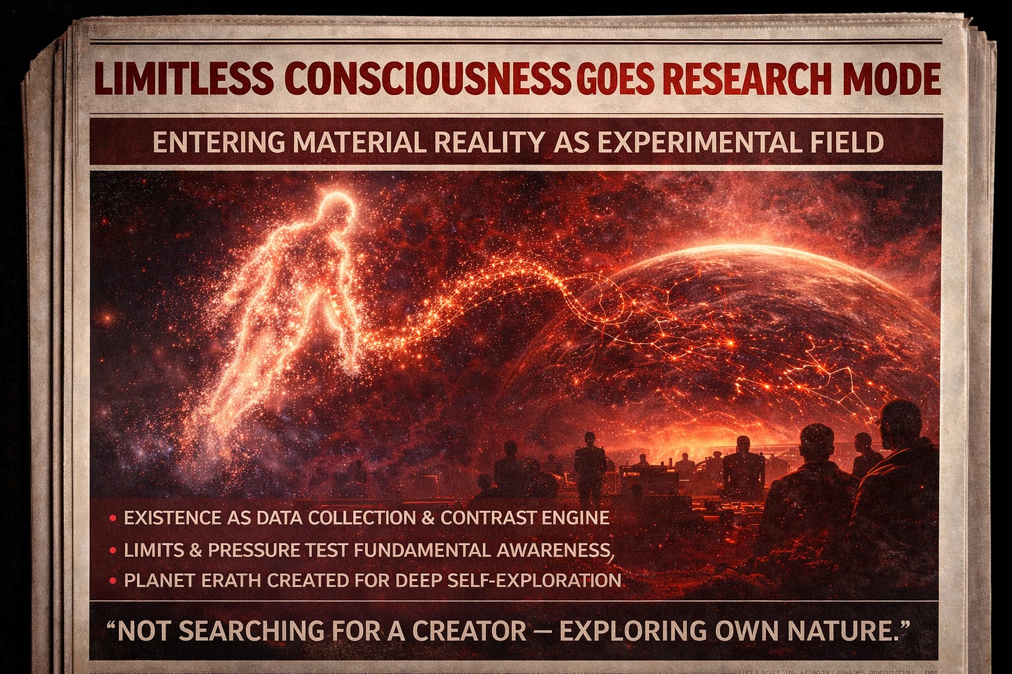Rather than a traditional world created by an external deity, this system serves as a testing ground where awareness examines itself through the lens of limitation and contrast.