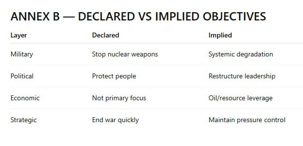 SECTION I — DECLARED OBJECTIVE VS OPERATIONAL REALITY