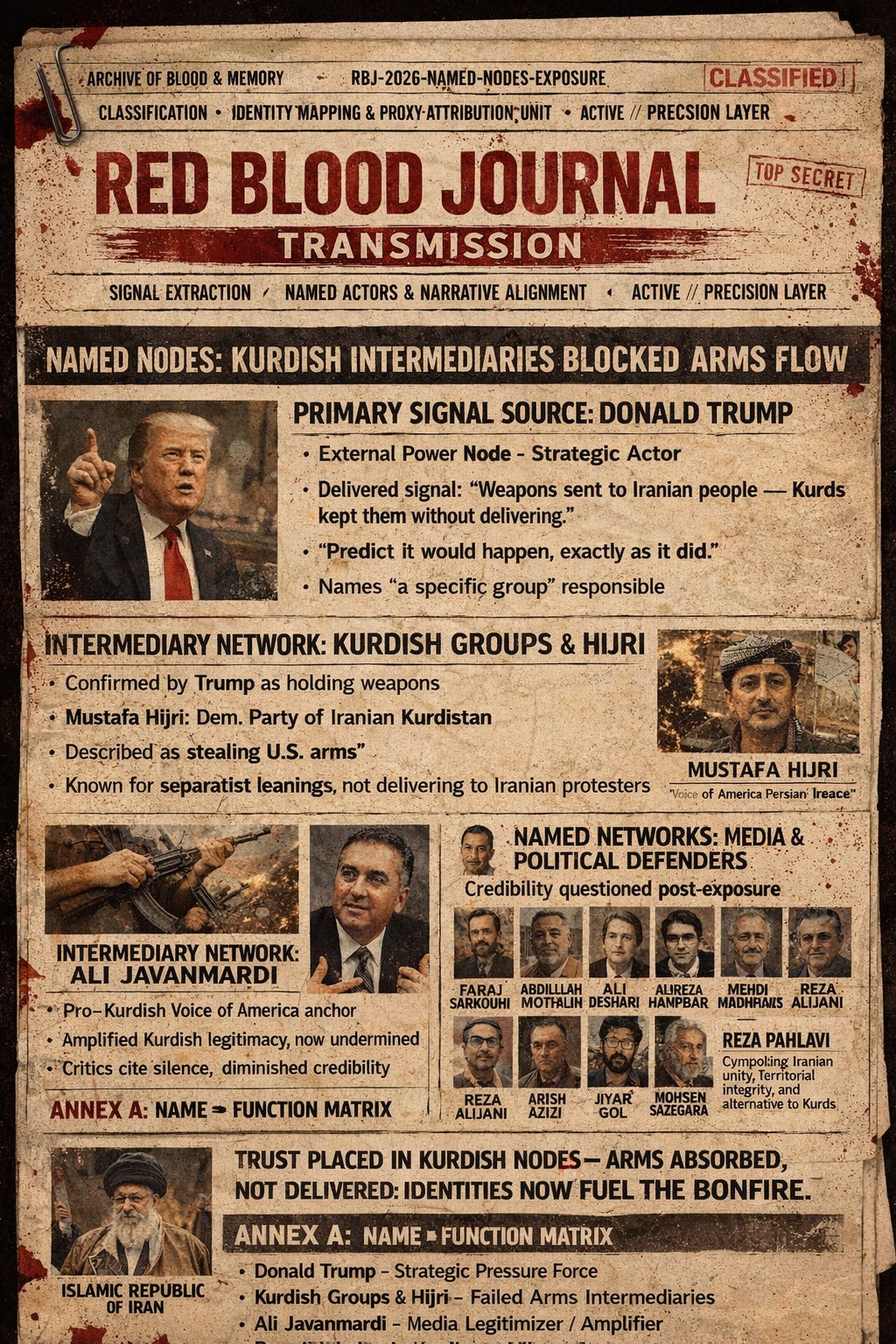 Central to this narrative is Donald Trump, an external actor who exposed how intermediary Kurdish groups allegedly intercepted weapons intended for internal resistance against the Islamic Republic.