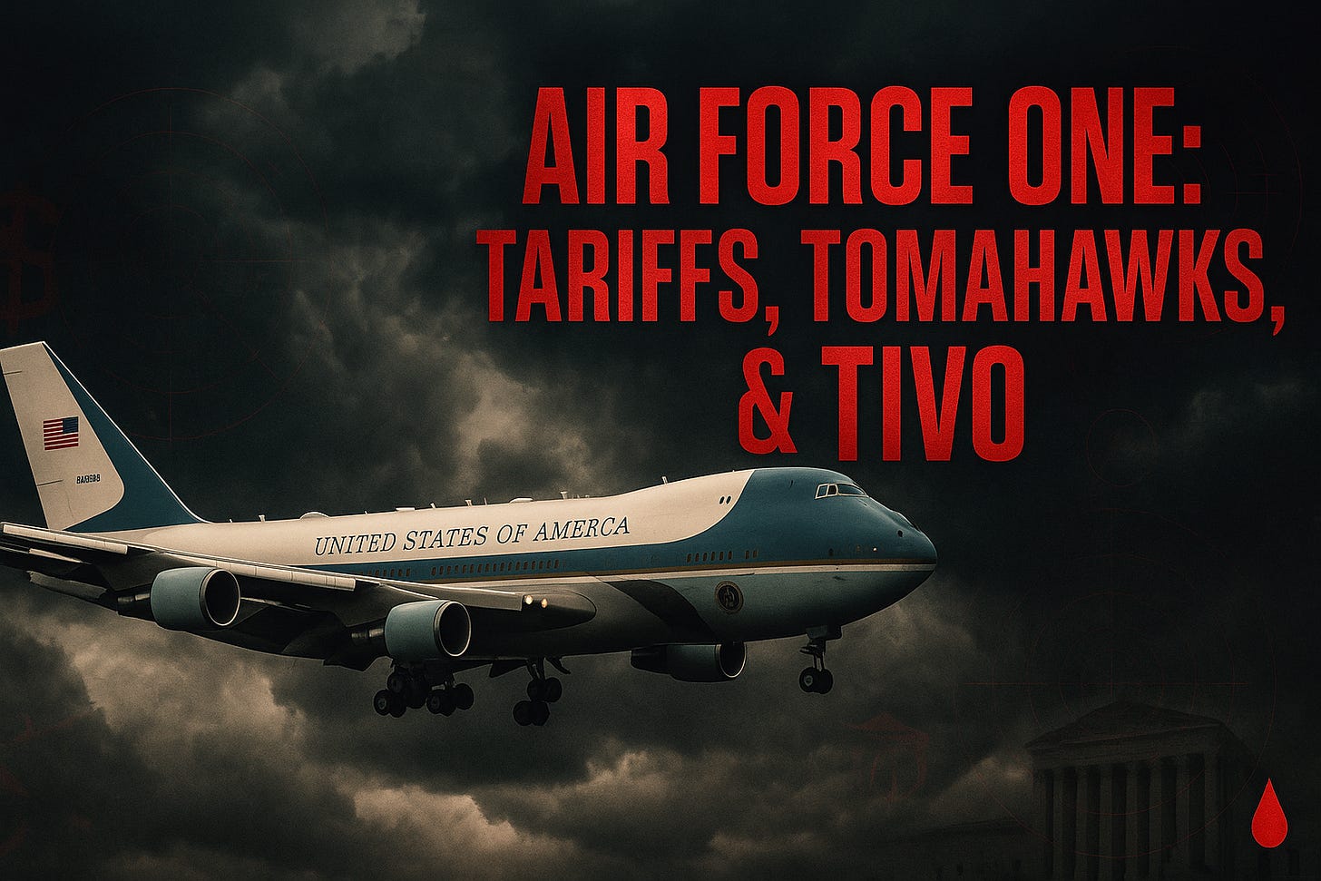🩸 AIR FORCE ONE: TARIFS, TOMAHawks, & TIVO Inside Trump’s High-Altitude Power BriefingRed Blood Journal TransmissionNov 03, 2025∙ Paid1Share🩸 AIR FORCE ONE: TARIFS, TOMAHawks, & TIVO Inside Trump’s High-Altitude Power Briefing A Red Blood Journal Exclusive Report Nov. 2, 2025 — Somewhere over the AtlanticRed Blood Journal is a reader-supported publication. To receive new posts and support my work, consider becoming a free or paid subscriber.SubscribeI. THE PRESIDENT AT CRUISING ALTITUDEPresident Tr…Continue reading this post for free, courtesy of Red Blood Journal Transmission.Claim my free postOr purchase a paid subscription.PreviousNext