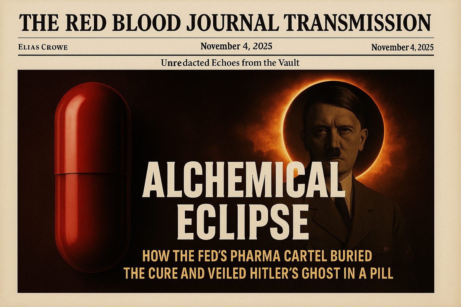 đЏThe Red Blood Journal Transmission: Alchemical Eclipse â How the Fedâs Pharma Cartel Buried the Cure and Veiled Hitlerâs Ghost in a Pill