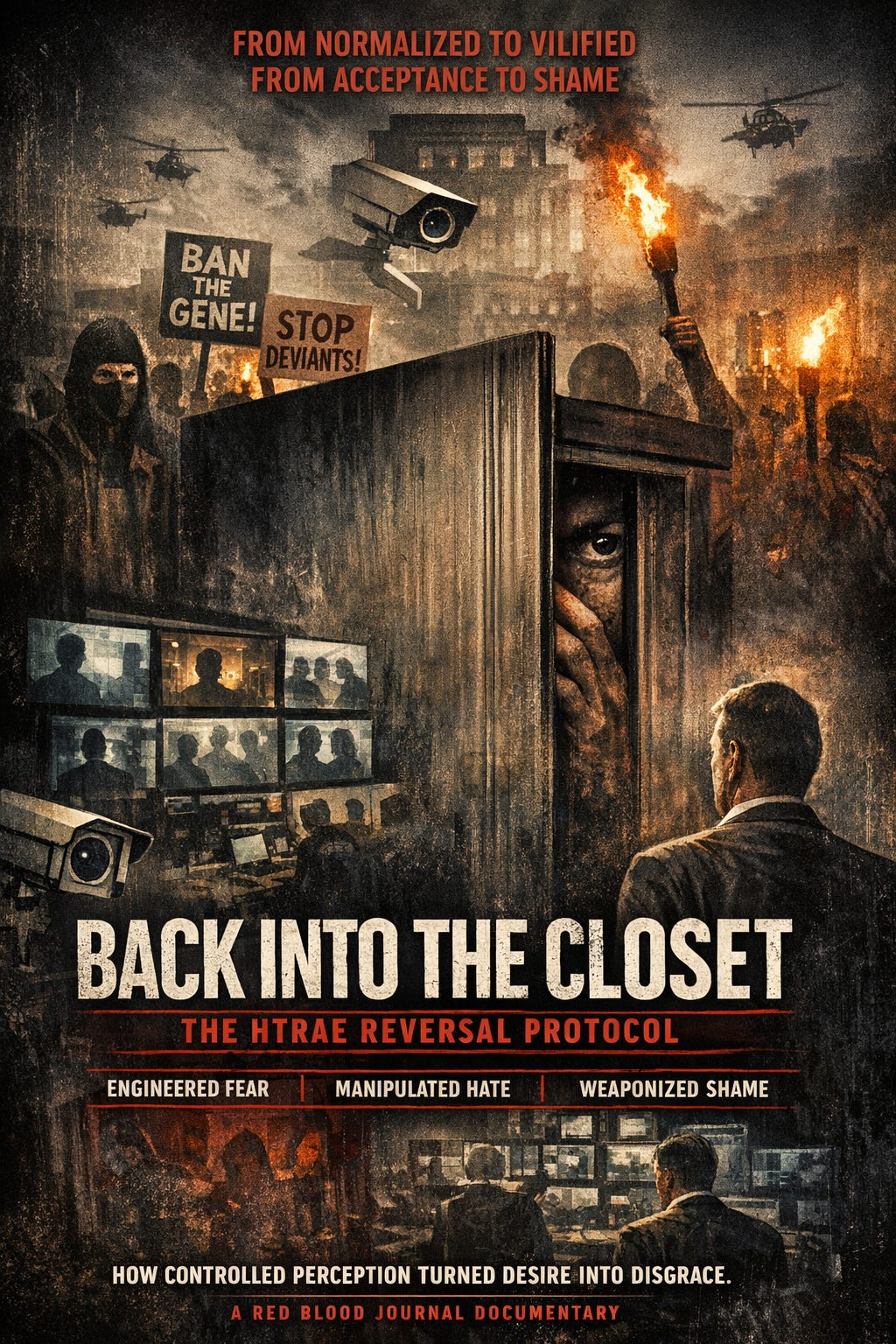 Notice: This transmission is a work of fiction set in the parallel world of Htrae. It does not describe real individuals, governments, or events. It is a speculative narrative examining hypothetical mechanisms of perception control and coercion infrastructure.