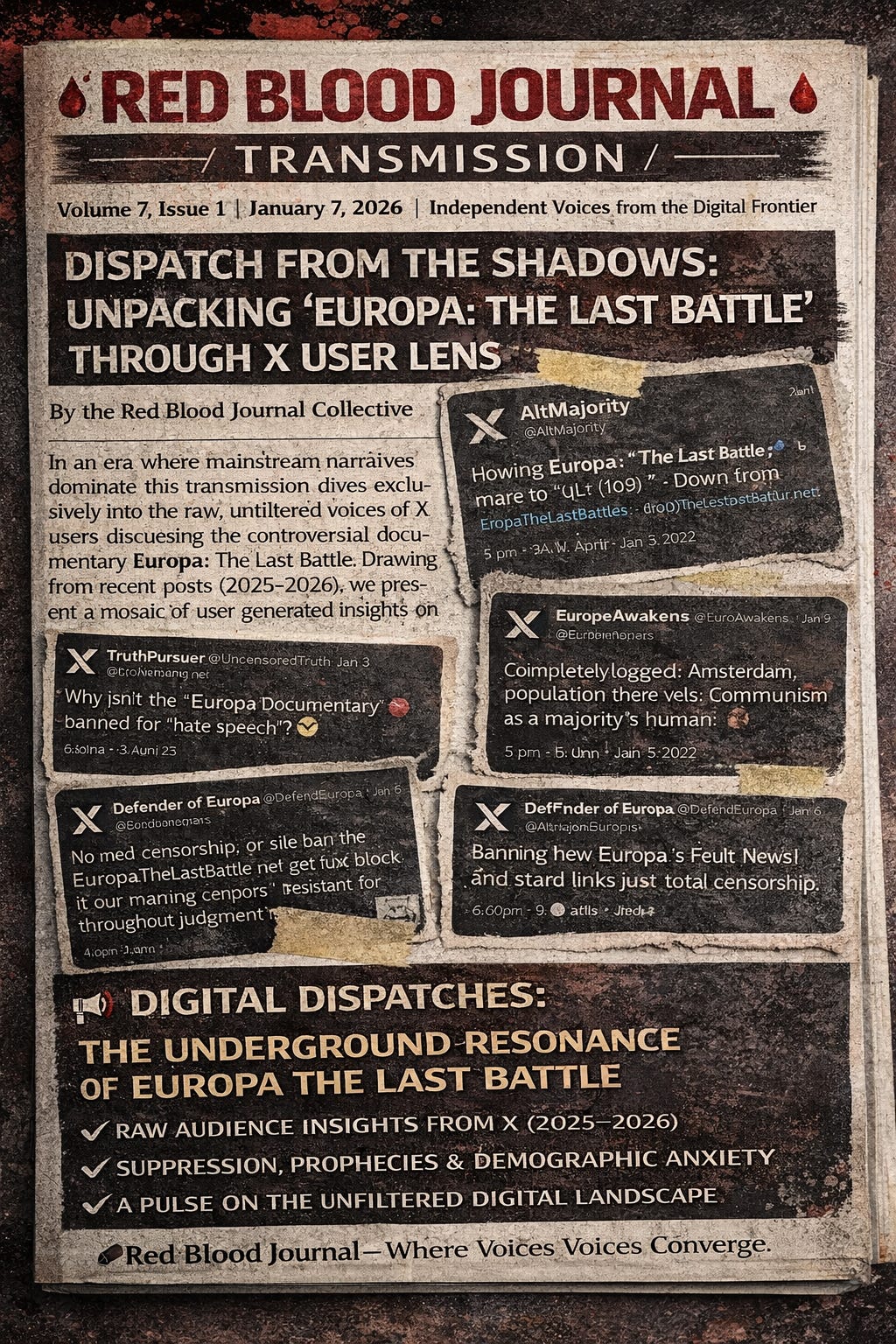 In an era where mainstream narratives dominate, this transmission dives exclusively into the raw, unfiltered voices of X users discussing the controversial documentary Europa: The Last Battle. Drawing from recent posts (2025–2026), we present a mosaic of user-generated insights on its origins, suppression, implied prophecies, and echoes in today’s demographic debates. No media spin here—just the pulse of the platform, where supporters hail it as a revelatory bombshell and critics decry it as divisive propaganda. As observers, we let the posts speak, highlighting the fervor and friction without judgment.