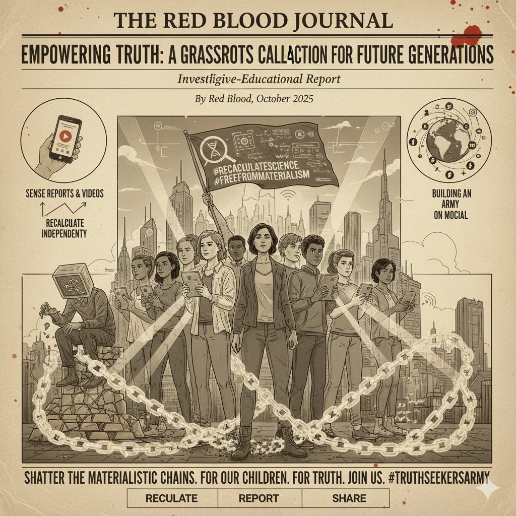 Readers of Red Blood Journal, the time for passive consumption is over. Act now. Recalculate, report, video, and share. Create accounts, rally truth-seekers, and ignite this grassroots fire. For the sake of our children and theirs, let us shatter the materialistic chains.