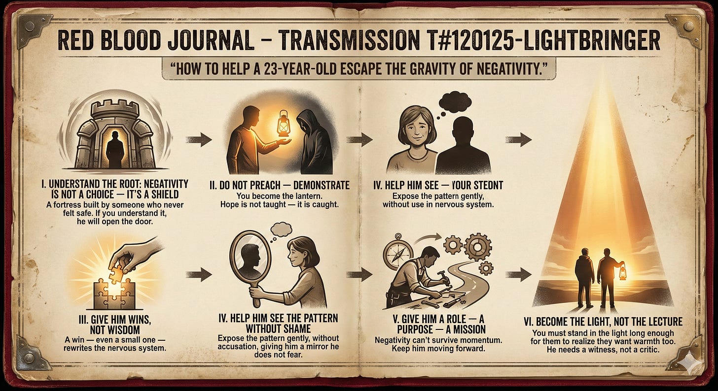 🩸 “HOW TO HELP A 23-YEAR-OLD ESCAPE THE GRAVITY OF NEGATIVITY.”