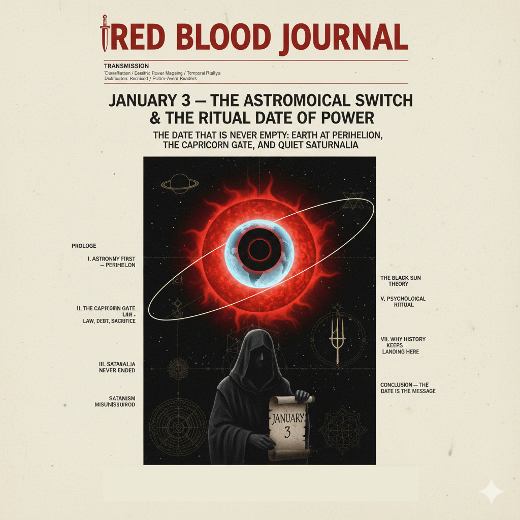 This report examines January 3 not as coincidence, but as astronomical timing, ritual synchronization, and power signaling—a date quietly embedded in esoteric calendars, occult doctrine, and elite statecraft.