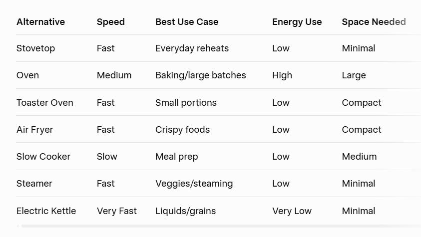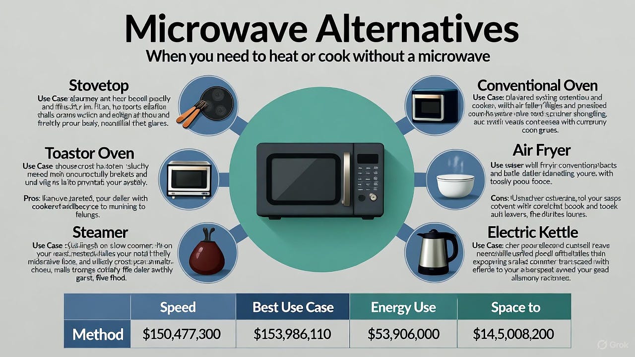 Here are effective, radiation-free alternatives, suitable for reheating leftovers, cooking from scratch, or defrosting: