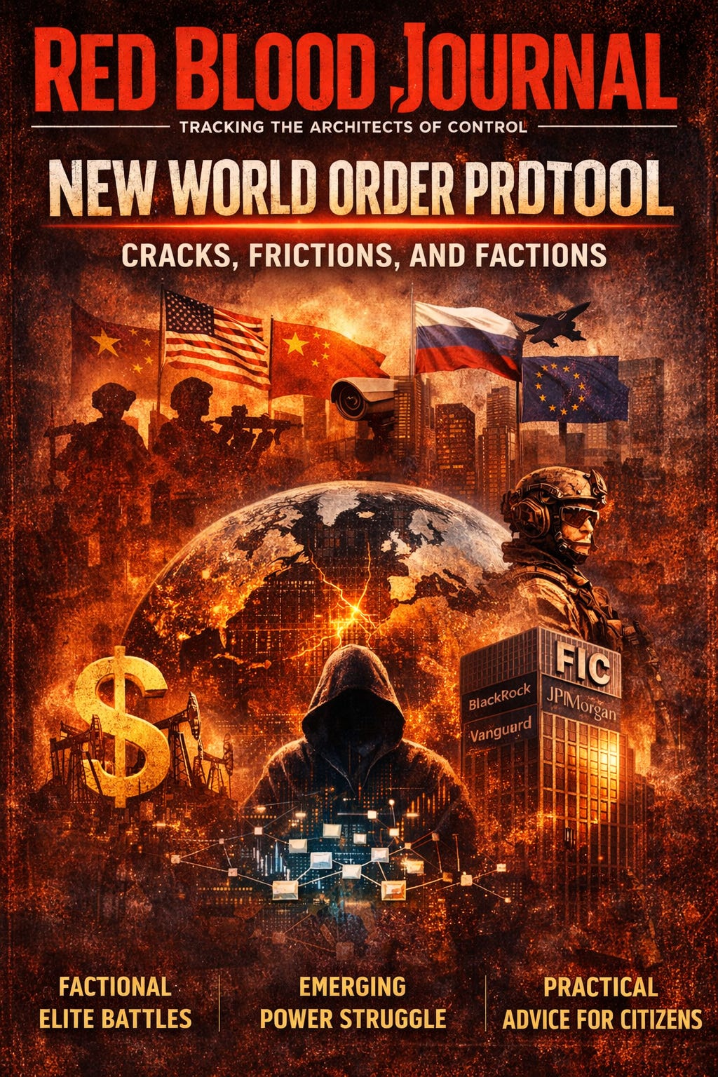 The provided text, a Red Blood Journal analysis dated 2026, challenges the notion of a unified global elite by detailing a “battlefield” of competing interests.