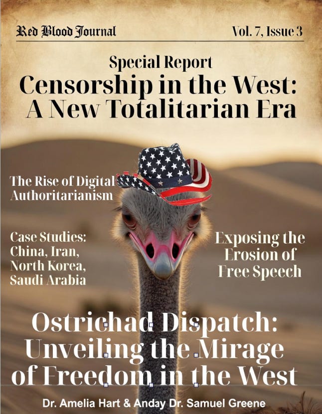This report from the Red Blood Journal introduces the concept of Ostrichad Syndrome to critique the perceived decline of intellectual liberty in Western nations.
