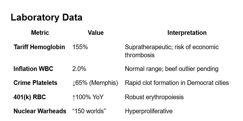 Echocardiogram (Xi-Trump): Synchronized sinus rhythm; Xi’s pulse drops 12 bpm at tariff mention.