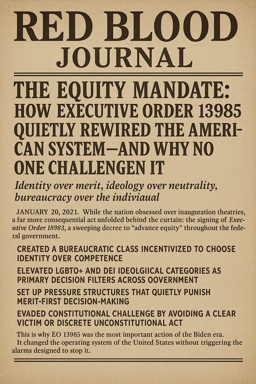 Title: The Equity Mandate: How Executive Order 13985 Quietly Rewired the American System — And Why No One Challenged It