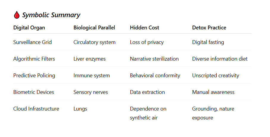 Surveillance acts as circulation; algorithms as synthetic livers.