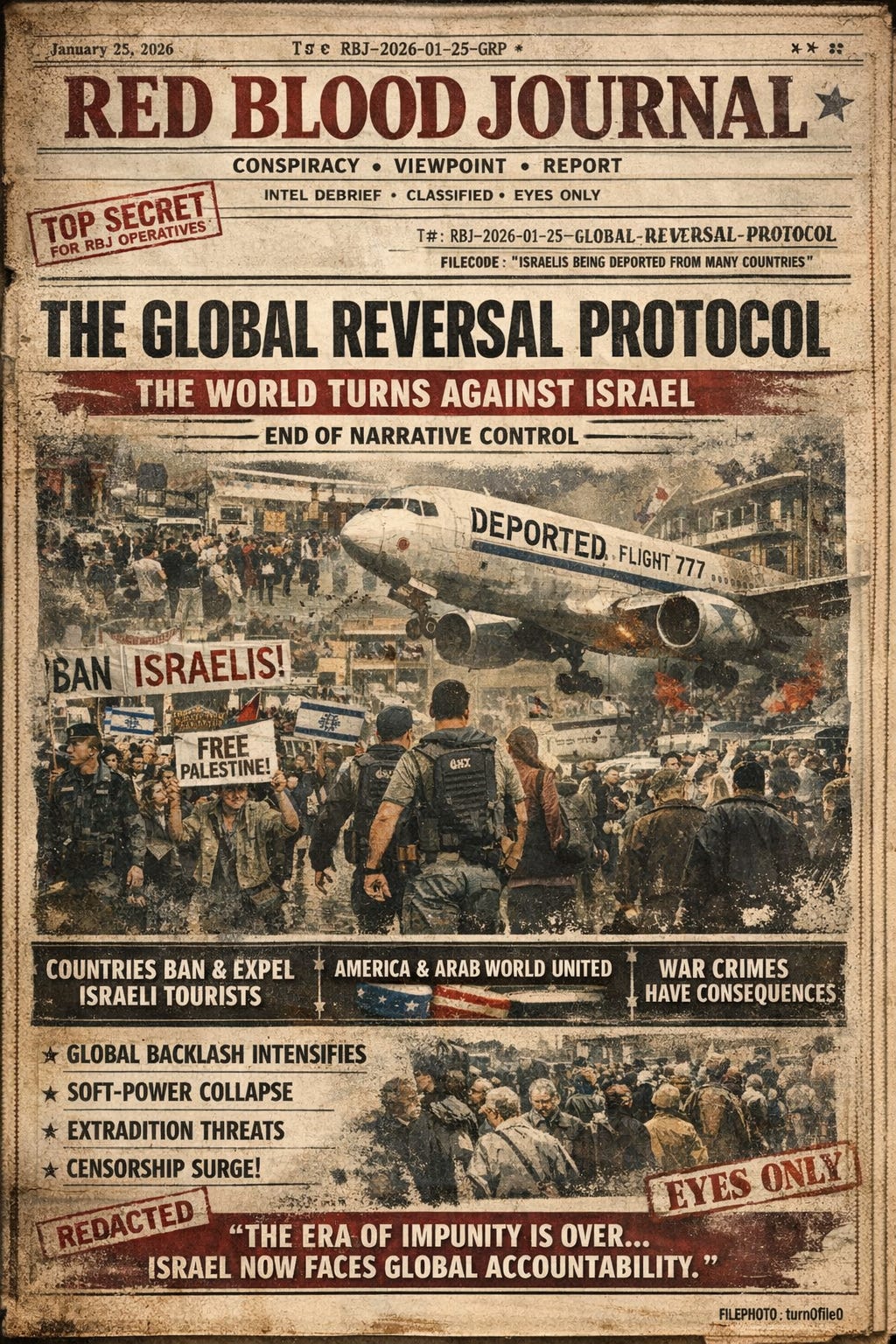 The provided text outlines a geopolitical shift termed the Global Reversal Protocol, which describes the sudden collapse of Israel’s longstanding diplomatic and narrative immunity.