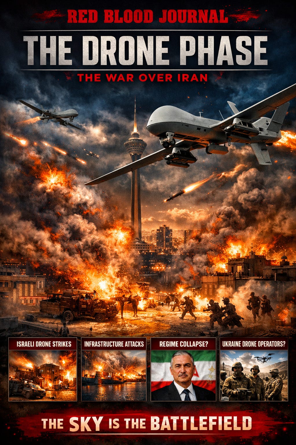 This text details a paradigm shift in modern conflict termed the “Drone Phase,” where aerial technology is utilized to dismantle the Iranian regime’s domestic authority.