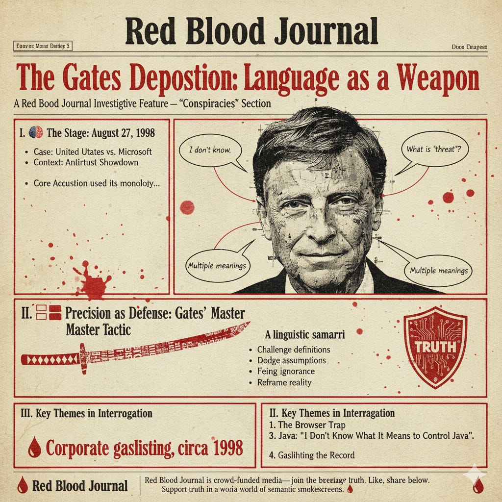 🩸 The Gates Deposition: Language as a WeaponA Red Blood Journal Investigative Feature | “Conspiracies” SectionRed Blood Journal TransmissionNov 01, 2025∙ Paid21Share🩸 The Gates Deposition: Language as a WeaponContinue reading this post for free, courtesy of Red Blood Journal Transmission.Claim my free postOr purchase a paid subscription.PreviousNext