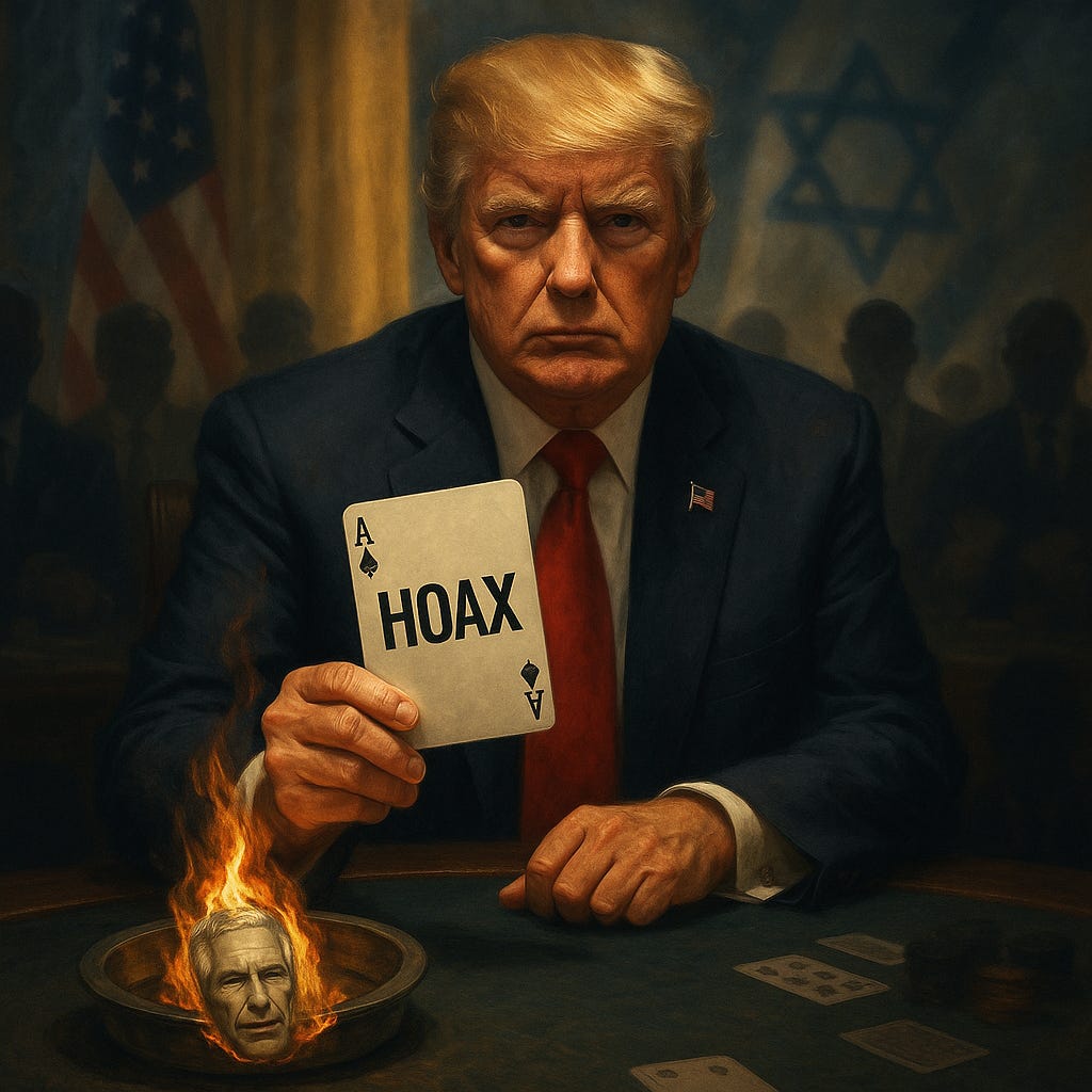 The Hoax CardBy Red Blood | The Red Blood Journal | October 18, 2025Red Blood Journal TransmissionOct 18, 2025∙ PaidShare🟥 The Epstein Firestorm: Trump’s “Hoax” Pivot and the Hidden Hands Behind the SilenceBy Red Blood | The Red Blood Journal | October 18, 2025Continue reading this post for free, courtesy of Red Blood Journal Transmission.Claim my free postOr purchase a paid subscription.PreviousNext