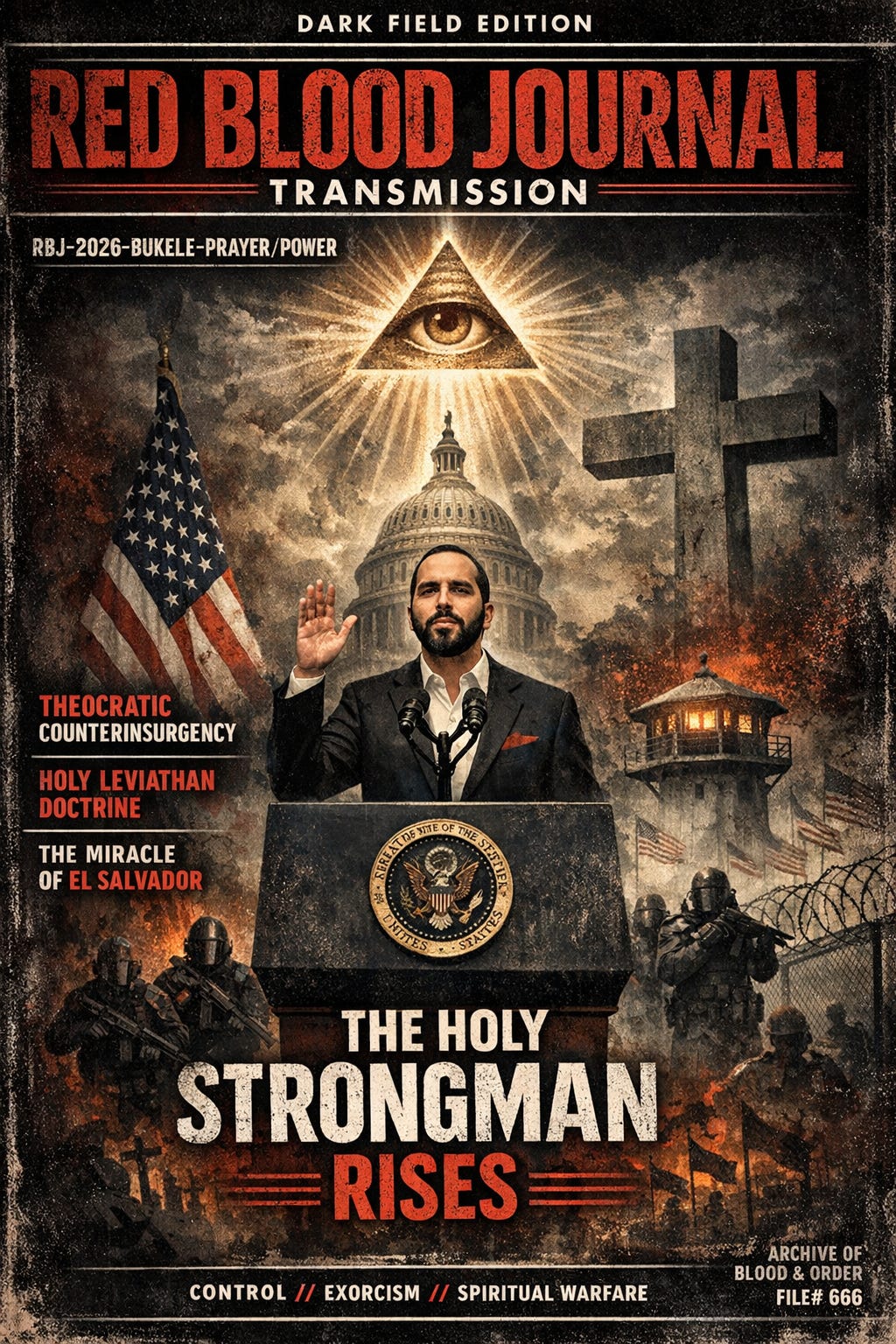 Bukele does not credit institutions, strategies, or policing models. He credits a miracle. The implication is precise: the security state is not merely permitted by God; it is operated through Him.