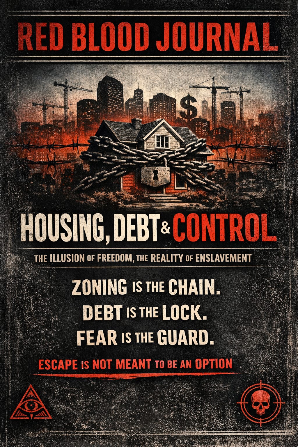 This text argues that modern society has replaced rising wages with a system of permanent debt facilitated by artificial housing scarcity.