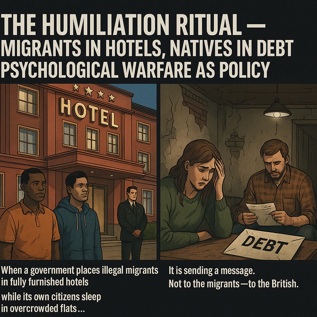 “THE HUMILIATION RITUAL — MIGRANTS IN HOTELS, NATIVES IN DEBT: PSYCHOLOGICAL WARFARE AS POLICY.”