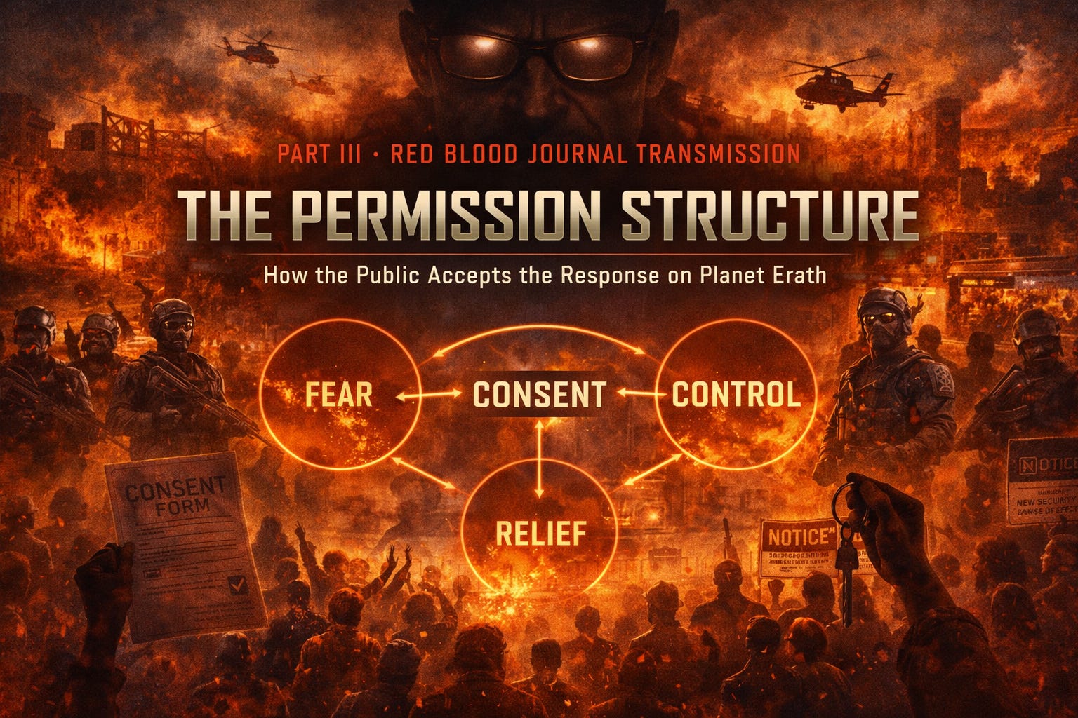 The provided text outlines a sophisticated psychological framework called the Permission Structure, which is used to gain public compliance on the planet Erath.