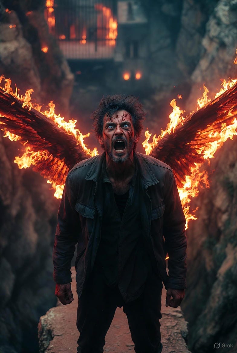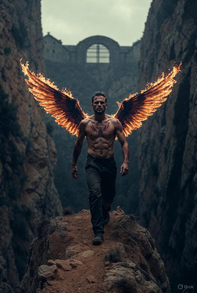 That is a man with wings made of fire and scars,