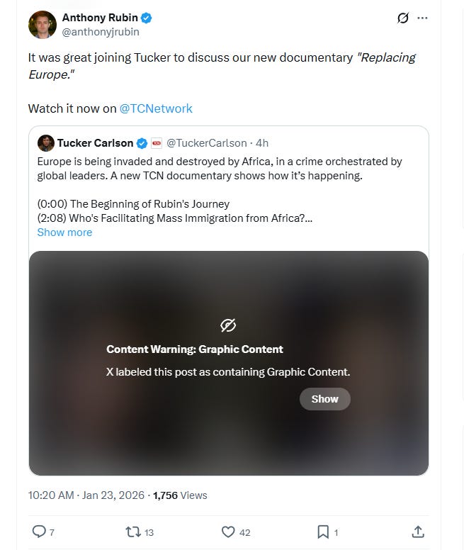Anthony Rubin posts a segment promoting the new documentary “Replacing Europe.”