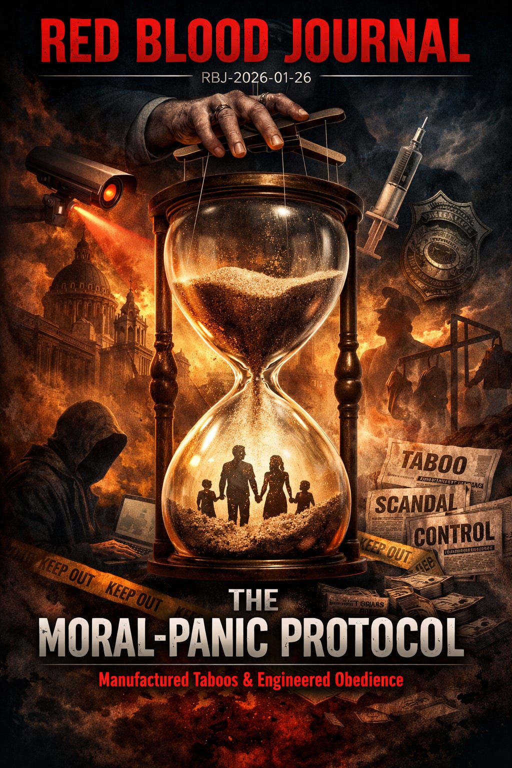 The provided text outlines a theory called the Moral-Panic Protocol, which argues that modern authorities intentionally manipulate social taboos and moral outcries to exert political control. This system allegedly seeks to dismantle the traditional family unit by redefining biological milestones and delaying the onset of adult autonomy. By promoting a state of perpetual adolescence, the architecture creates a populace that is easier to manage, surveil, and influence through institutional dependency. The document suggests that natural instincts and domestic loyalties are framed as criminal or deviant to eliminate them as competing power structures against the state. Ultimately, the narrative warns that these manufactured panics serve as a sophisticated mechanism for behavioral governance and social engineering.