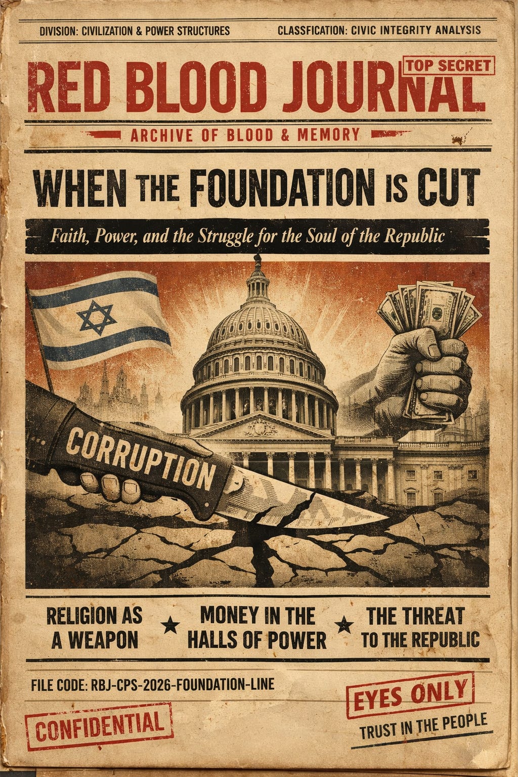 The conspiracy thrives in darkness, but exposure is its kryptonite. Citizens must demand transparency: unmask the money trails, reject religious veils on policy, hold officials to the founders’ flame. The republic endures not by laws alone, but by an awakened populace refusing the hidden hand’s grasp. Fail, and the fusion completes—faith weaponized, power monetized, liberty extinguished. This is the red blood warning: the plot is real, the cuts are deep, but the fight belongs to those with eyes wide open.