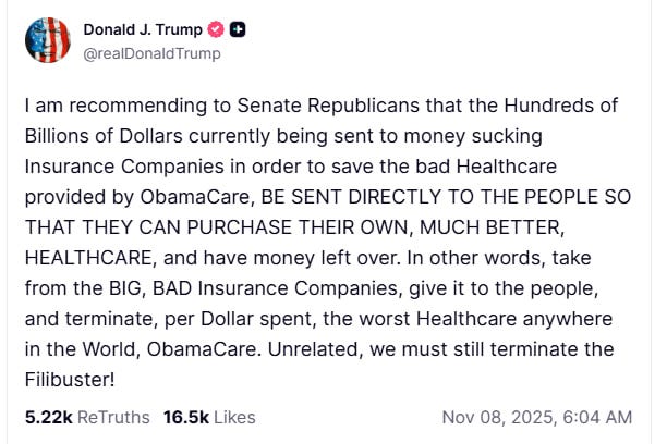 Donald J. Trump just issued a public directive — not a suggestion, not a whisper — a direct call for Republicans to reroute “Hundreds of Billions” from the Insurance Cartel straight into the hands of the people.