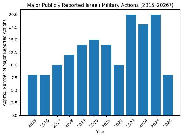 Later years show preemptive leadership decapitations, infrastructure targeting, and cross-border depth strikes.