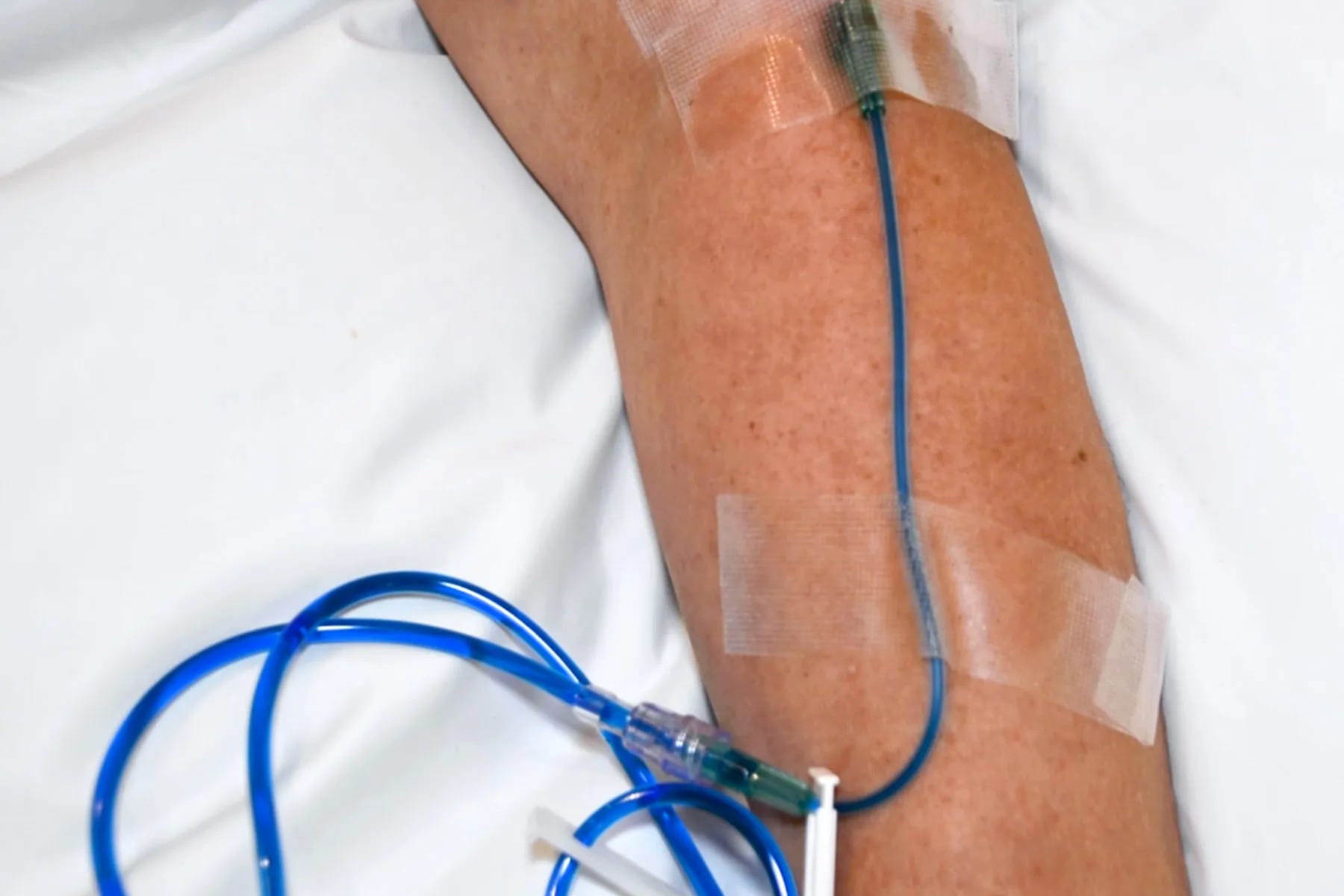 Intravenous administration of methylene blue, commonly used in treating methemoglobinemia.