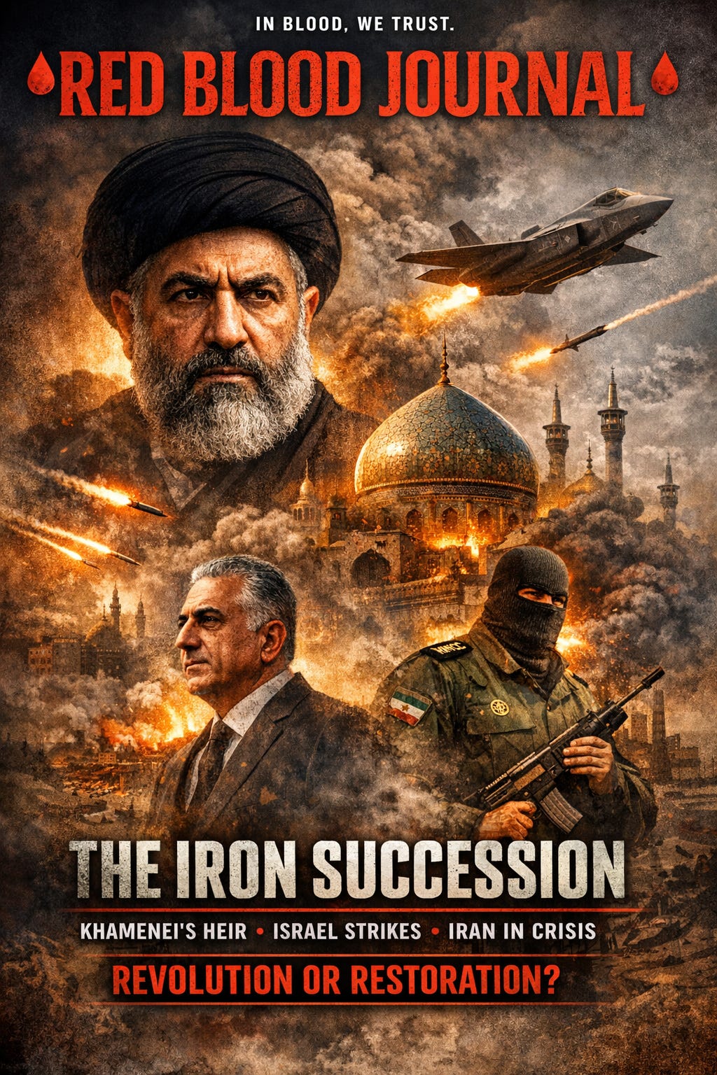 Reports from the Red Blood Journal detail a high-stakes leadership transition in Iran occurring amidst an active military conflict with Israel.