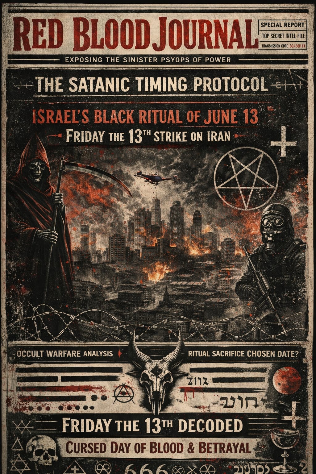 This document analyzes the 2025 Israeli military strike against Iran through the lens of esoteric warfare and symbolic timing. The author contends that global powers utilize occult numerology and ritualized calendars to amplify the psychological impact of their operations. By launching an attack on Friday the 13th, the military allegedly tapped into historical archetypes of betrayal and state-sanctioned destruction dating back to the Knights Templar. The text argues that this reflects a broader strategy of Satanic inversion, where sacred days are intentionally weaponized to subvert traditional meanings and project dominance. Ultimately, the report suggests that elite intelligence networks view the calendar as a ritual map, using specific dates as psychological artillery to signal inevitability and power.