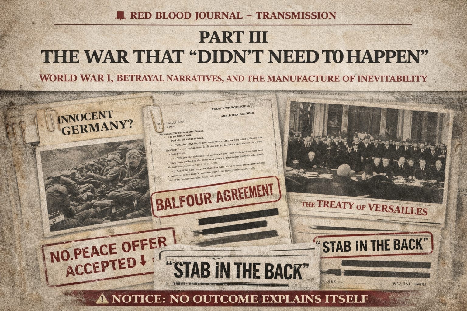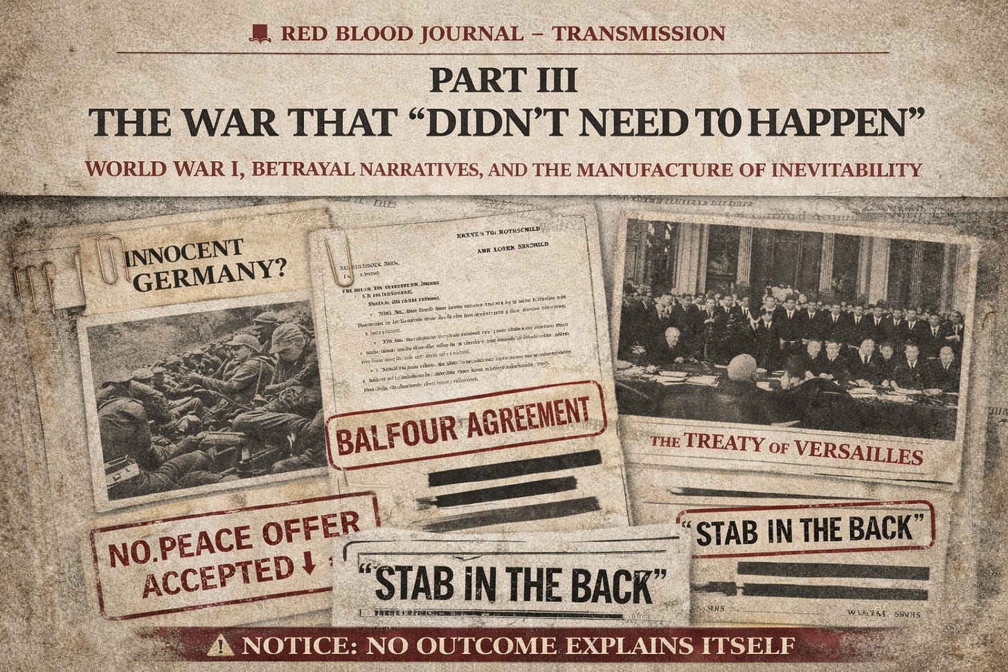 From this moment on, World War I is no longer presented as a tragic collision of empires — but as a manipulated event, prolonged deliberately for geopolitical gain.